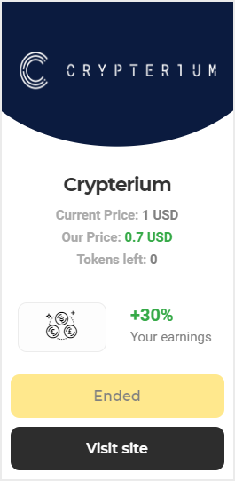 By the results of Cryptereum tokens sale at a cost lower than pre-sale one, our users got advantage of 30% and we thank our users for their trust and look forward to further productive cooperation.