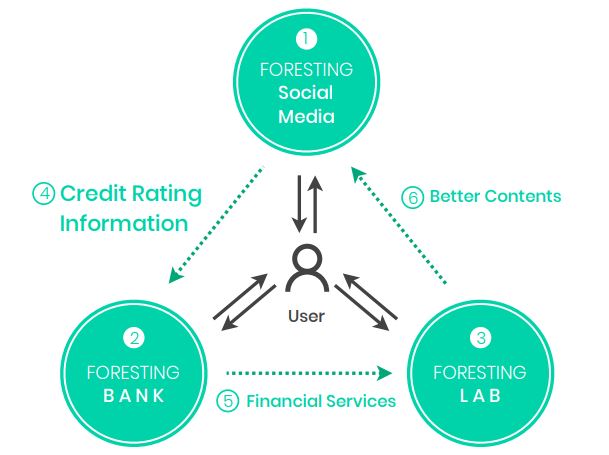 Банк создаётся для оказания финансовых услуг пользователям. Вклад создателей контента измеряется с помощью специальной модели оценки. Объем предоставляемых финансовых услуг прямо пропорционален вкладу в платформу: создание контента (у кого-то лучше, у кого-то хуже), приобретение токенов, различные транзакции. Свои кредитные рейтинги можно улучшать создавая более качественный контент. Банк позволит участникам не отвлекаться от работы в соц. сети, потому что в данный момент многие люди испытывают финансовые трудности, всё время уходит на работу, очень часто низкооплачиваемую. Многие регионы, даже в которых есть интернет, живут за гранью нищеты и безнадежности. Миллионы людей не имеют доступа к финансовым инструментам, таким образом Foresting Bank может стать финансовым инструментом их благополучия.