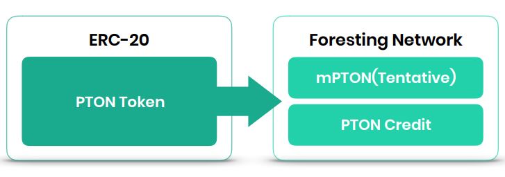 Все транзакции в сети Foresting основаны на токене PTON. Токен базируется на ERC-20. Большая часть выпущенных токенов будет продана, остальная распределена по всей экосистеме. Интересно отметить, что рыночная стоимость PTON основана на ценности вознаграждения участников, создающих контент. После запуска сети, в зависимости от скорости её продвижения, токены PTON поменяются местами с монетами mPTON. PTON Credit, являющийся стандартом оценки кредита, будет управлять экономикой токена.