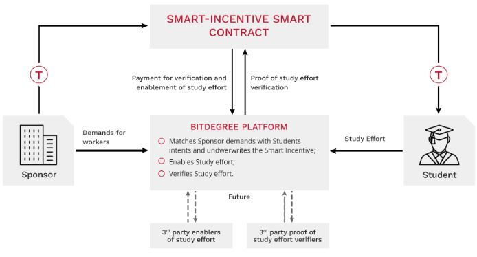 Dan apabila ia datang kepada BitDegree, smart-incentive smart contract menerima bukti pengesahan usaha kajian dari BitDegree dan isu-isu pembayaran untuk pengesahan dan pembolehan usaha kajian.