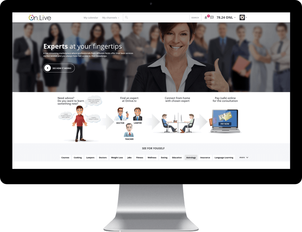 The On.Live platform will completely change the way video broadcasts as well as remote consultation markets operate. The potential for scalability is unlimited utilizing the power of blockchain technology. Using P2P networking any user with computing power and an internet connection can contribute to the platform. A smart incentivization system ensures that the contributors are properly rewarded, driving the decentralized economy forward with ONL tokens.