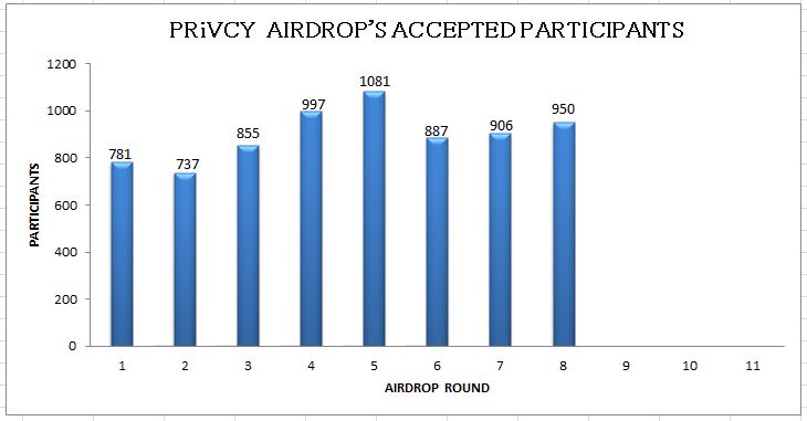 Let me present my PERSONAL work of statistics in successful 8th airdrop of PRiVCY, Spreadsheet for the final list of accepted participants was released in July 28, 2018 3:10 PM Saturday, Coordinated Universal Time (UTC) by PRiVCY-CMO one of the admins in discord channel. This week is 46 higher participants compare to last week as graph shows below: