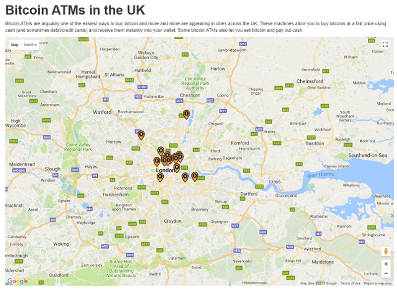This may well have been true, even a short time ago, but a quick search on the net reveals things are changing rapidly. This is a map of London showing bitcoin ATMs.To quote the site, “Bitcoin ATMs are arguably one of the easiest ways to buy bitcoin and more and more are appearing in cities across the UK. These machines allow you to buy bitcoins at a fair price using cash (and sometimes debit/credit cards) and receive them instantly into your wallet. Some bitcoin ATMs also let you sell bitcoin and pay out cash.”