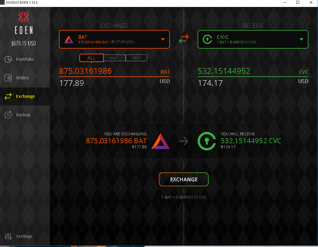 Exodus:EDEN Also includes the Shapeshift.io cryptocurrency conversion service integrated right into it .