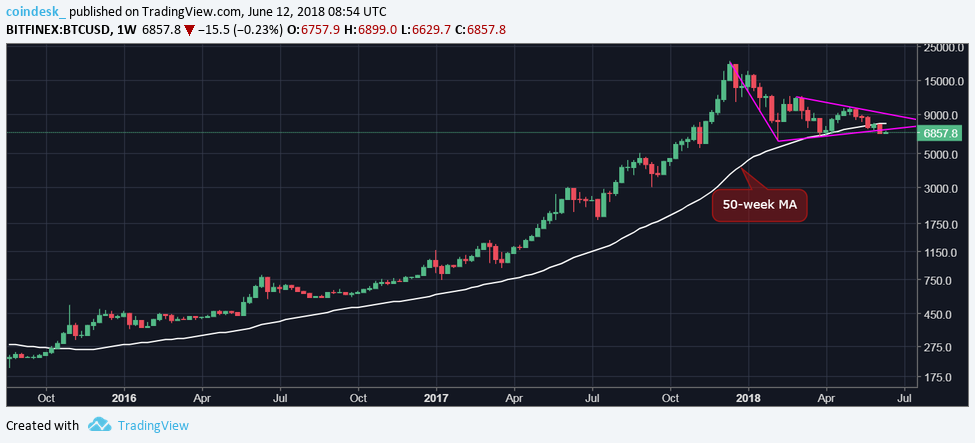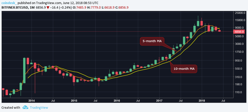 And, last however not the smallest amount, the charts additionally show there's loads of house to the draw back as a serious support is seen directly at $6,000 (Feb low). A violation there would open up draw back towards $4,496 (100-week moving average) and $3,300 (trendline drawn from the August 2015 low and March 2017 low).