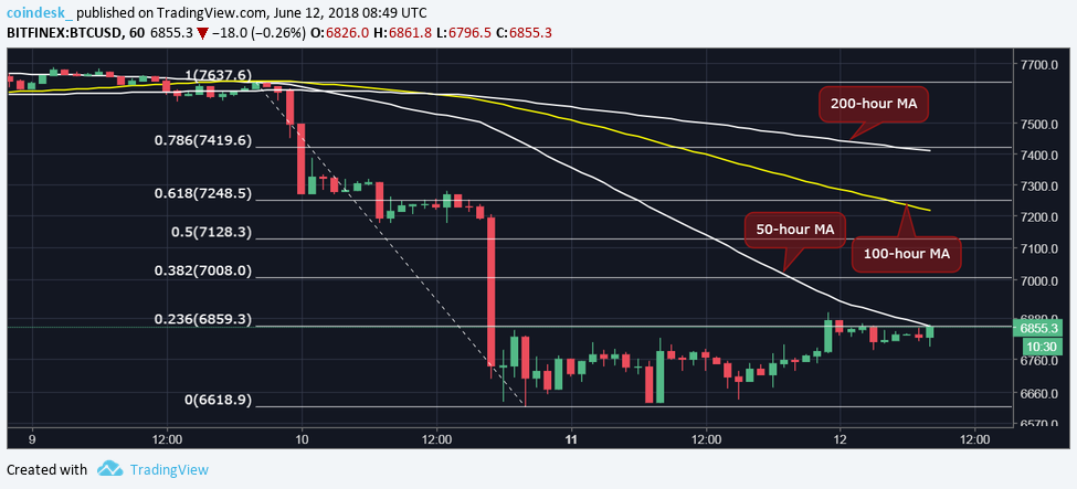 What's a lot of, the cryptocurrency is troubled to seek out acceptance on top of $6,859 (23.6 % Fibonacci retracement). The failure to beat a decreased Fibonacci hurdle solely indicates however powerful it may be for bitcoin to scale $7,008 (38.2 % Fibonacci hurdle).