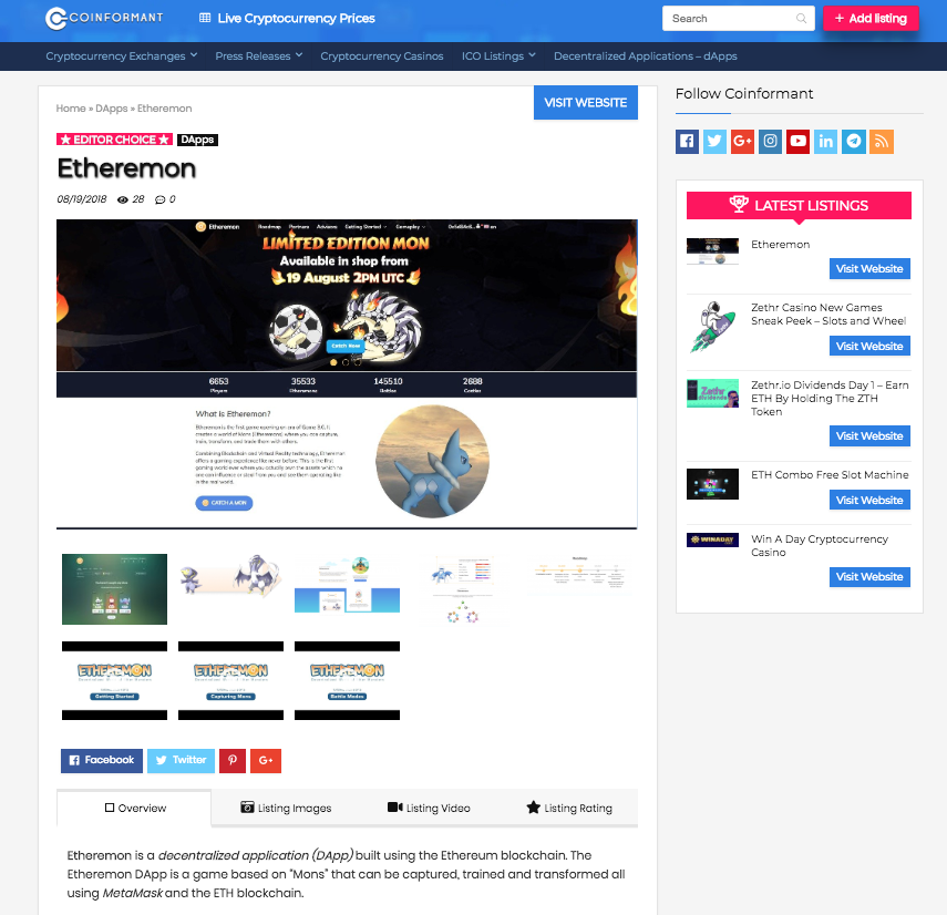 Etheremon Added To Coinformant.com