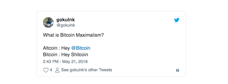 I have tried to capture the core of Bitcoin Maximalism in this tweet of mine.