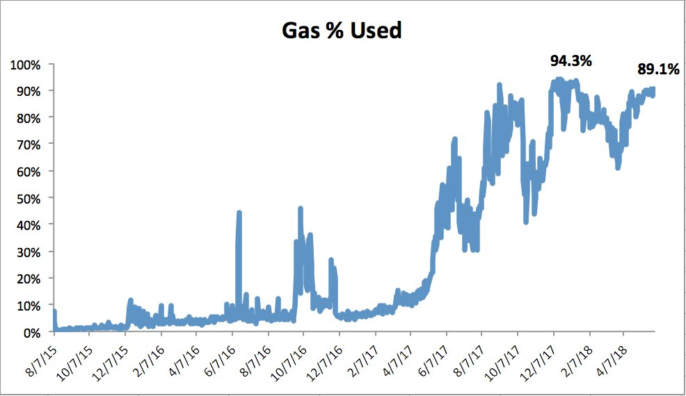 ETH Gas Rise Againgordonramzy (40)in #cryptocurrency • 8 years ago ETH gas % used is on the rise again to 90%, approaching the December highs of 94%. And this is without any application with material usage... What's going on and what does the future look like for ETH? #blockchain #crypto-addiction #ethereum #internet
