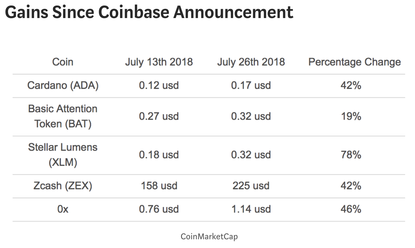 The smallest gains have been made with Basic Attention Token (BAT), only increasing 19% and currently having a marketcap of $326 million.