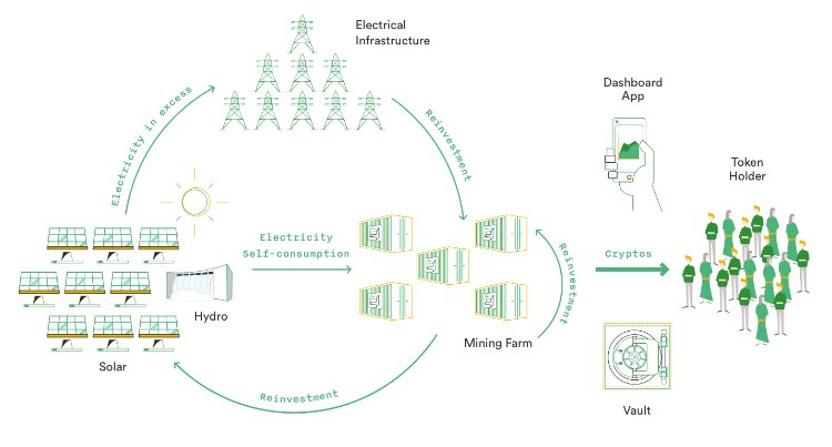 Their startup makes the Blockchain sustainable by using renewable energy to mine cryptocurrencies and shares the benefits with token holders. Crypto fans, Miners, and other investors will profit from the exponentially growing demand for energy to power worldwide crypto-mining activities.
