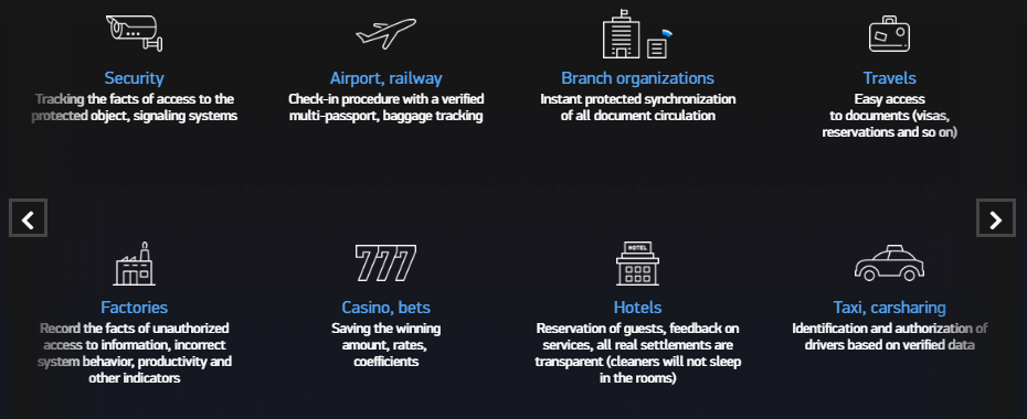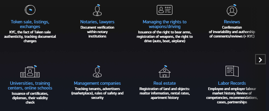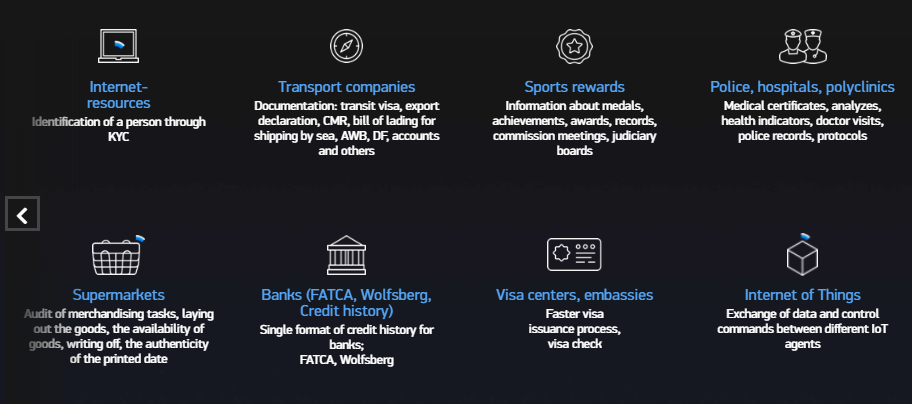 EToken is an intra-platform utility token. EToken is the only currency that can be used to pay verification fees and data exchange between system users. If the user decides to store data on third-party servers, or to store hashes on other Blockchains, the User pays with the ET, which is exchanged for the other currency.