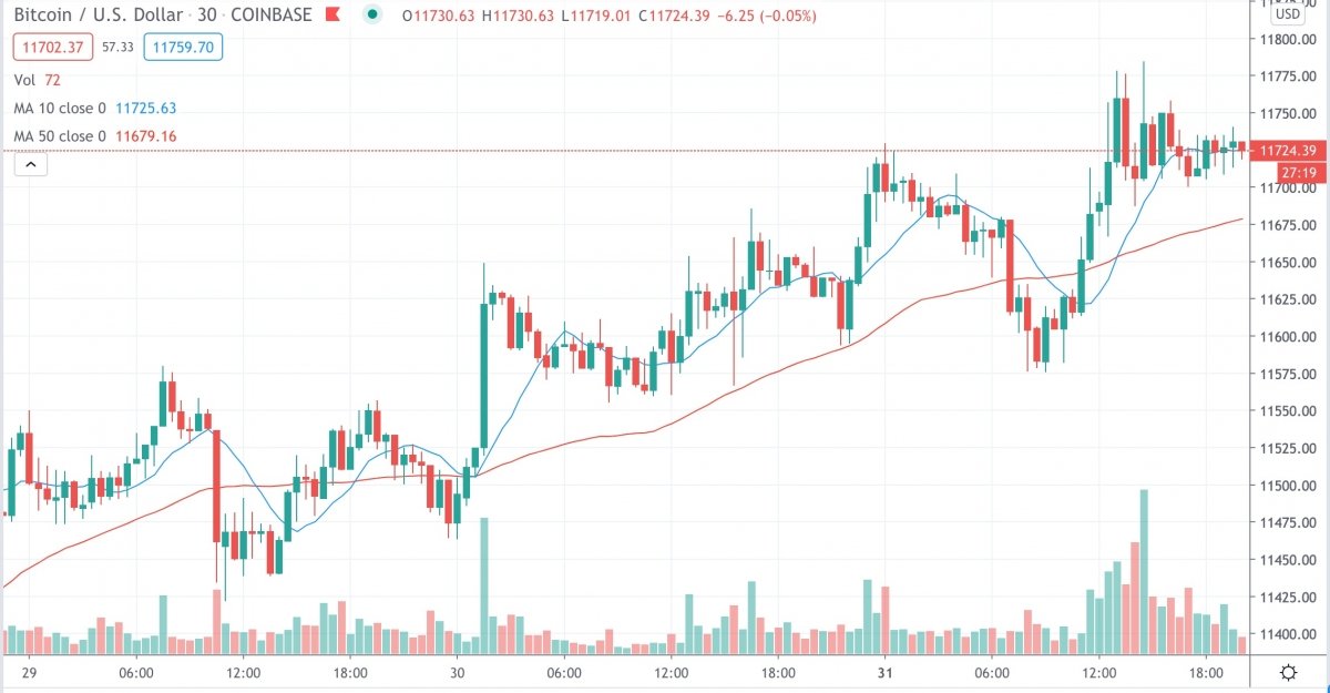 => Bitcoin (BTC) trading around $11,724 as of 20:00 UTC (4 p.m. ET). Gaining 0.61% over the previous 24 hours.
