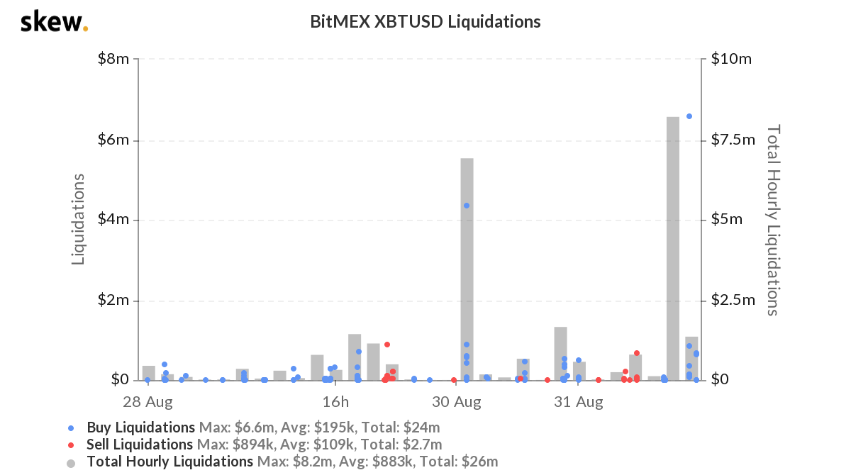 Bitcoin jumped as high as $11,784 on spot exchanges like Coinbase on Monday. Adding fuel to the fire was the derivatives market; short sellers were liquidated on BitMEX during bitcoin’s rise Monday. In one hour, $6.6 million in buy positions were automatically triggered, the crypto equivalent of a margin call for traders going short.