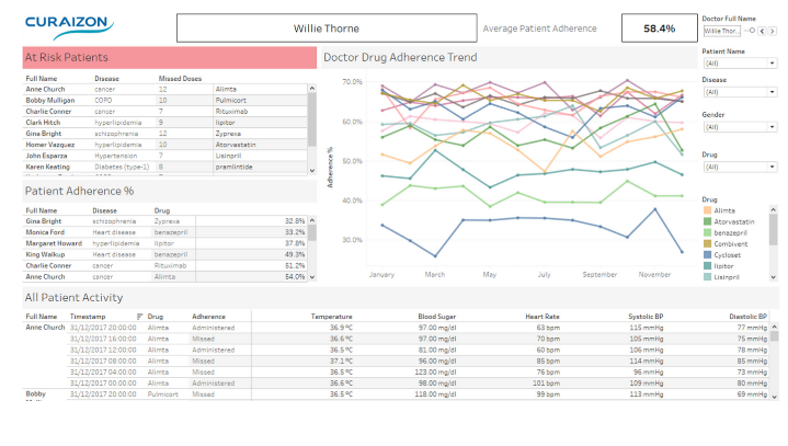 Overall, Curaizon's solution is divided into three parts: CuraServe (a reminder system that follows the healing route), Curadata.