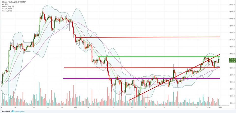 Long: On a confirmed break above $7051 – Price Target $7223 | Probability: High