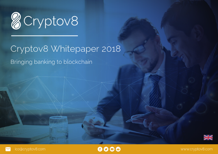 Cryptov8 adalah harapan baru bagi semua pengguna teknologi Blockchain. Proyek ini akan menciptakan bank yang akan memanfaatkan teknologi Blockchain, dan Cryptov8 akan berfungsi sebagai jembatan antara Cryptobanking dan produknya dan menjadi layanan perbankan tradisional. Menggunakan Cryptov8 meningkatkan adopsi di seluruh dunia dan meningkatkan cryptocurrency. Rencana pengembangan teknologi rantai blok bank ini akan berada di Inggris.