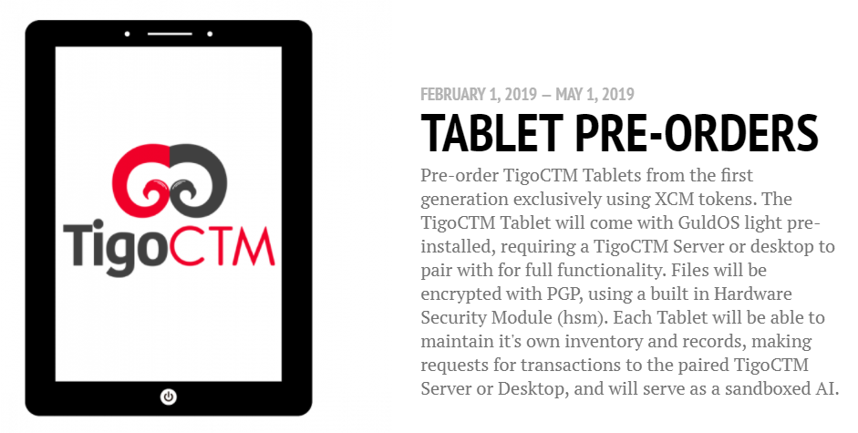 Each TigoCTM device will ship with some Guld tokens so it can register on the global, decentralized Guld network. Through the Guld network, any file or directory can be shared and trustlessly governed by a user defined consensus group.