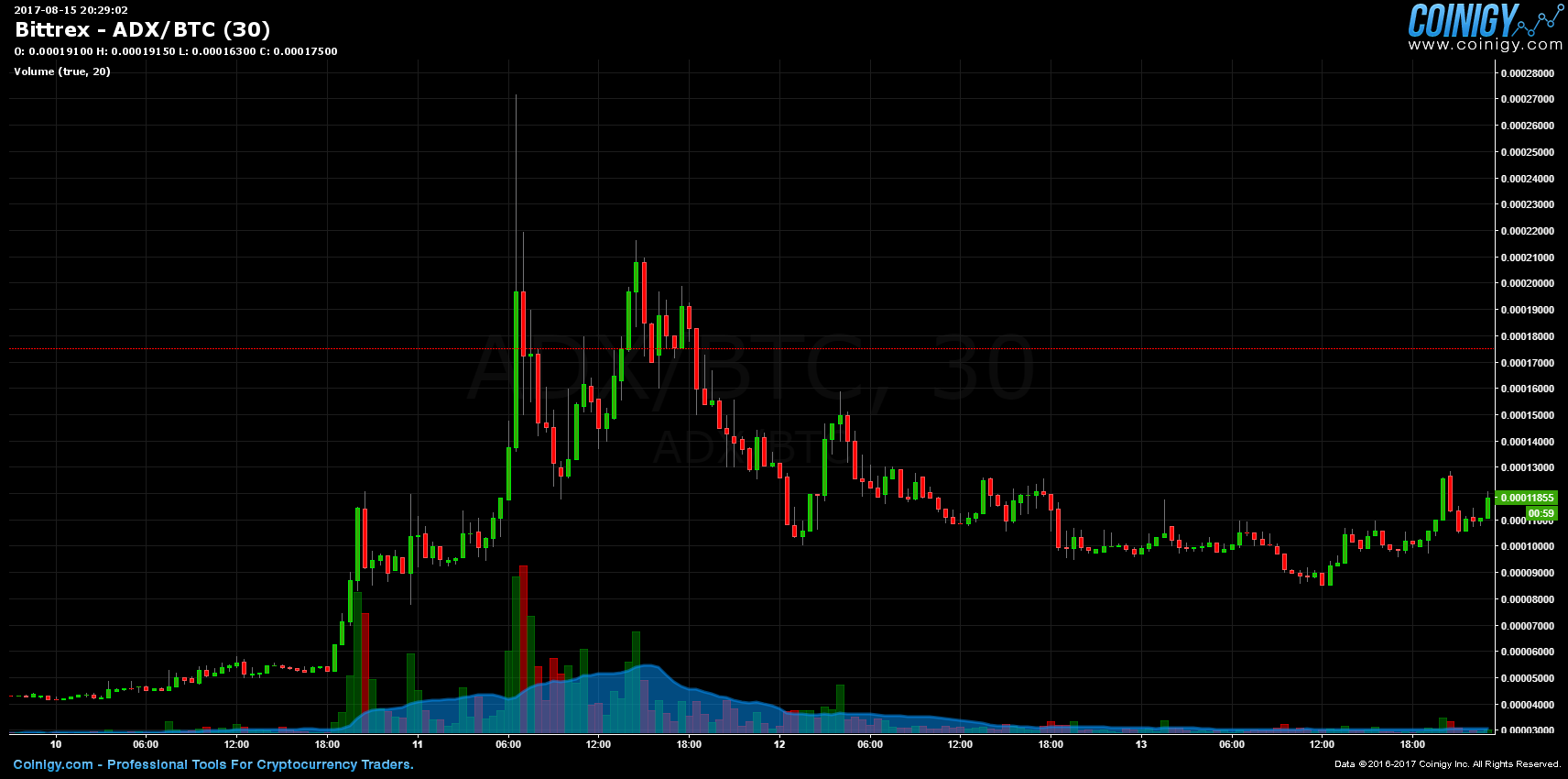 On August 10th, ADX saw a huge price increase of over 200% after releasing news of The AdEx Core, which is built on Ethereum. There was some corrections to the price and consolidation afterward.