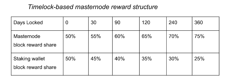 Proposal #3 is the suggestion to restructure masternode rewards to a “timelock based structure” and is a direct precursor to proposal #4. At this time 20,000 ION are required to host a masternode. In Matlack’s words, “You can move in and out of masternode status in about 24 hours, you have no penalty, and you get half the block reward.” The ION team proposes the following solution to maintain a stronger masternode presence as more work begins to be offloaded to the second layer.
