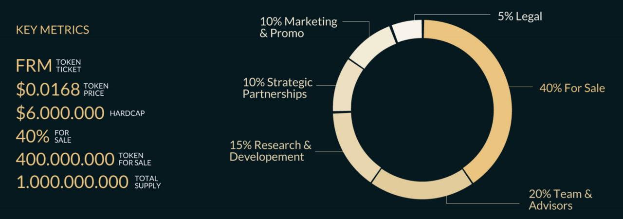 - ICO Token Price: 1 FRM = 0.01600 USD