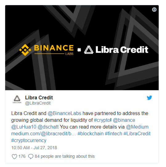 The world’s largest cryptocurrency exchange, Binance announced a partnership with a decentralized global lending network platform Libra Credit to offer fiat and cryptocurrency loan to BNB token holders through its platform.
