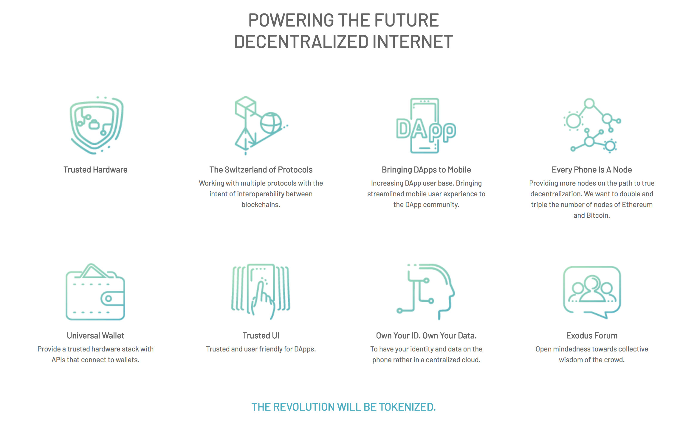 HTC’s new phone, called Exodus, is designed to support decentralized applications,have increased security, and will be built with a hardware element that connects to cryptocurrency wallets. The company claims that they want to “double and triple the number of nodes of Ethereum and Bitcoin” and boasts that every phone will be a node, and will be optimized to not eat up storage, bandwidth, and phone performance. No details have been given yet regarding phone specs.