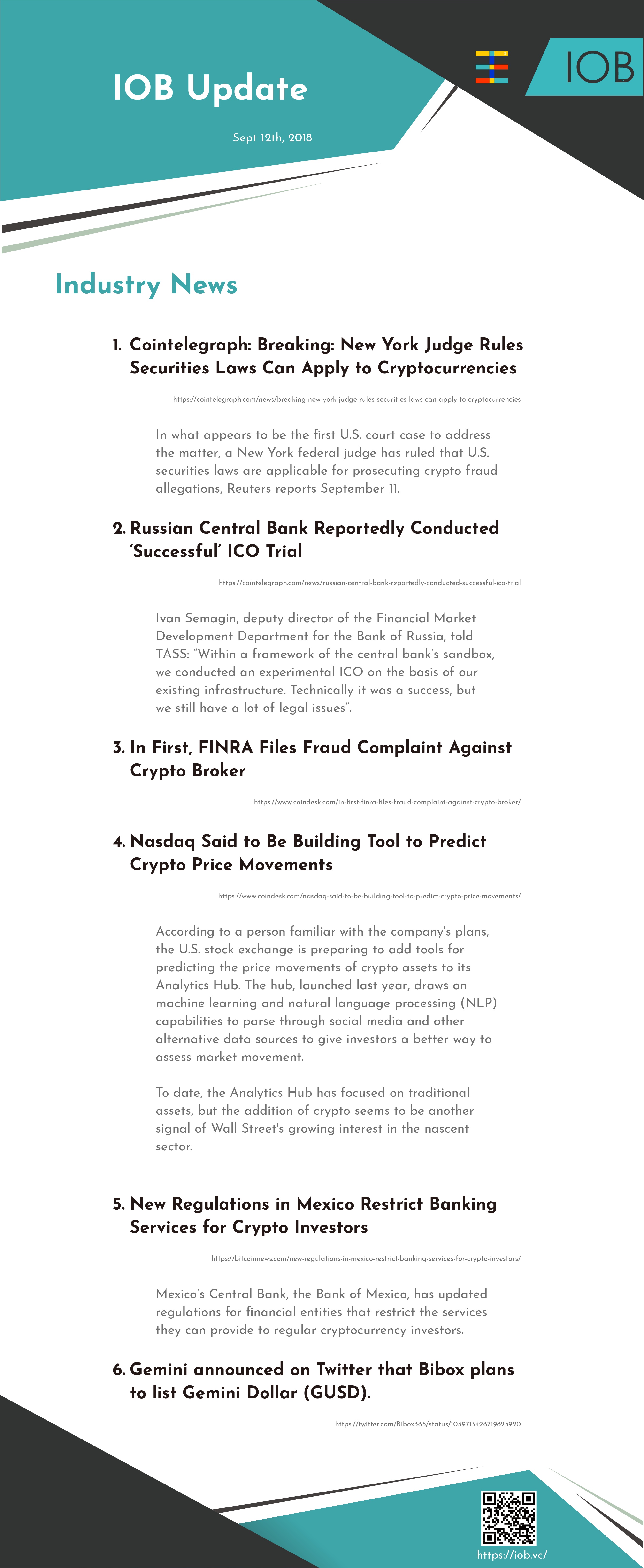 IOB Daily Sharingiobteam (25)in #cryptocurrency • 8 years ago #IOB Daily News - Sept 12th, 2018 #blockchain #iob