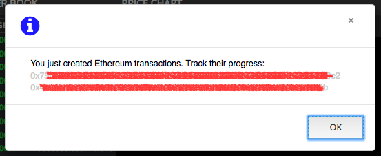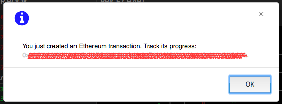 Se la transazione è stata registrata, la piattaforma vi segnalerà con un messaggio pop-up la sua avvenuta e vi indicherà i dettagli della transazione che potrete utilizzare per rintracciarla sulla rete della blockchain.