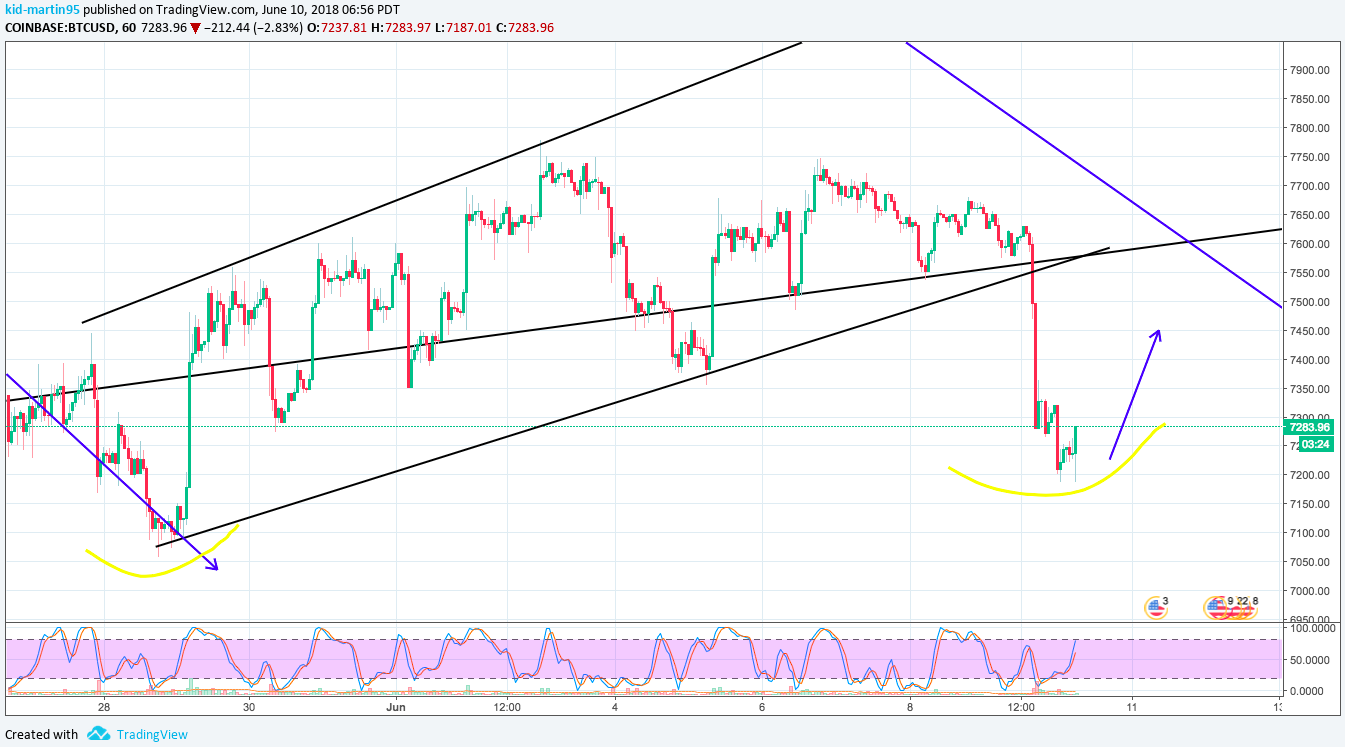 Hourly : However trigger timeframe showing potential double bottom and we could see a run towards $7,600. BTC will be at a critical point here break or bust...hope I helped