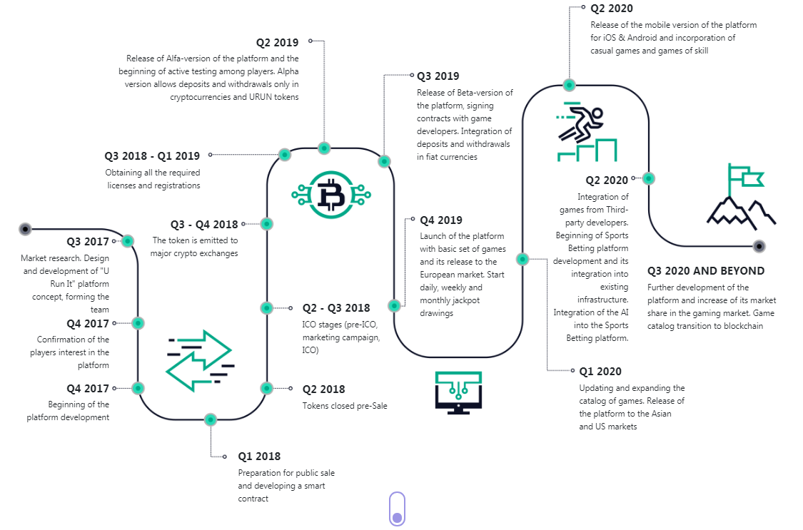 URUN tokens are required to use U Run It platform, but the number of tokens circulation will constantly decrease. URUN tokens are used as "fuel" for all the transactions to pay for the services within the platform, and with every transaction a small number of tokens is "burnt" (they are taken out of circulation). However, in the same time the number of casino operators using our platform as well as overall number of players using URUN tokens will grow exponentially. Therefore, the demand for URUN tokens will constantly increase.