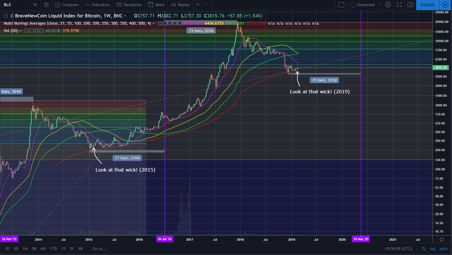 Look at these candles too, both had a rejection candle with a bear wick to the .786 level, which also to note held with no capitulation. Can also see the similarities between the days until the next halving.