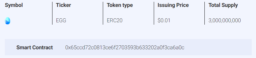 EGG is being offered to members of the public through a token sale exercise with 20% of the total supply(600 000 000) being made available for purchase at the 100 EGG=1 USD.