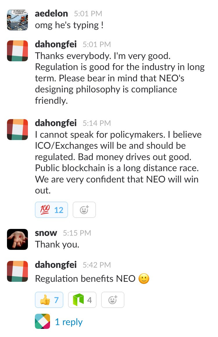 NEO believes regulation is good.