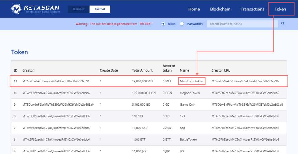 Because it is a testnet, you can create a Meta token and present it to your friends, and it’s a good test page that you can experience token publication for fun.