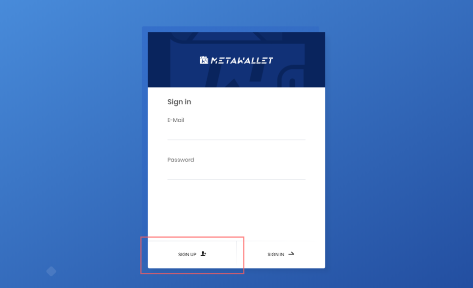You can sign up by clicking the SIGN UP button on the MetaWallet homepage.