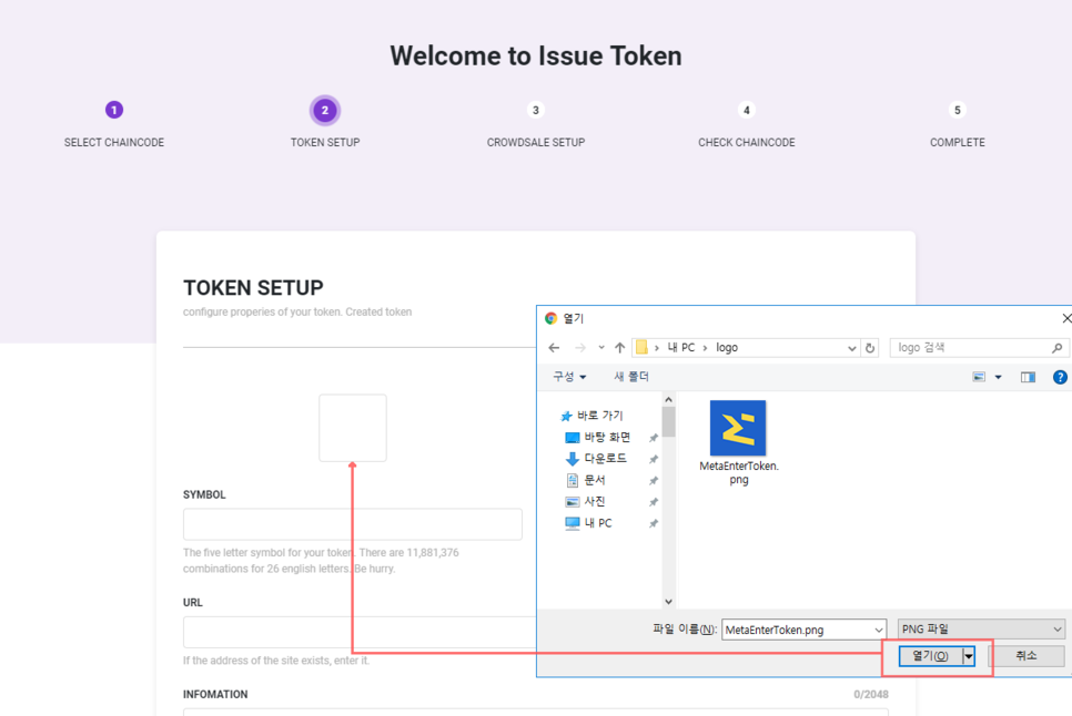 토큰 로고 이미지: 포멧은 jpg/ png/ gif, 사이즈는 6262 px를 권장합니다.