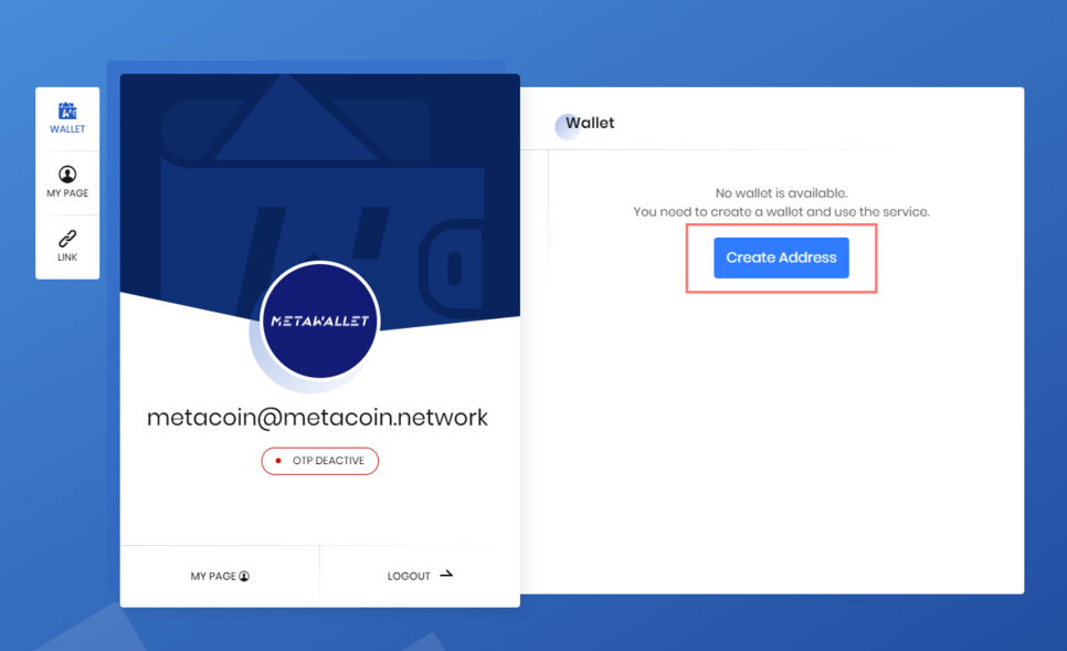 Click the “Create Address” button to get a Metacoin(MTC) Wallet.