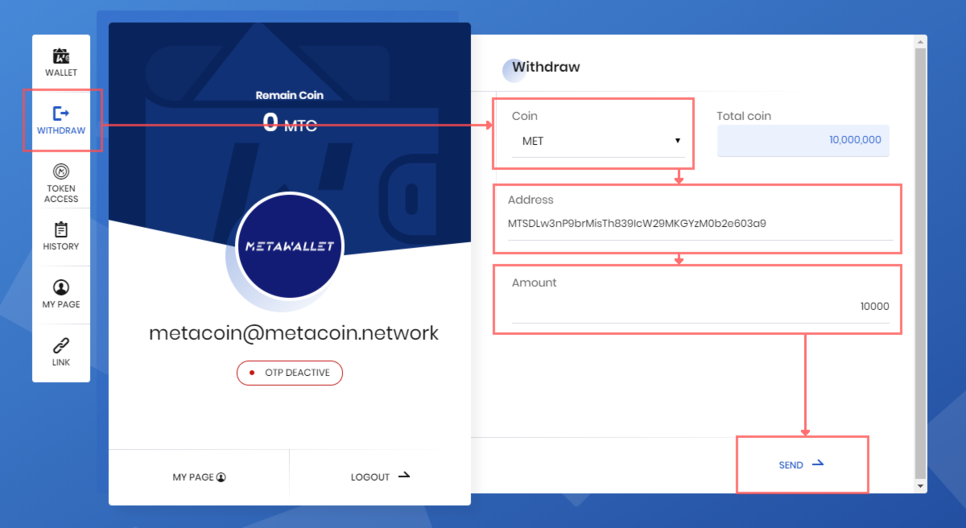 - Login in MetaWallet.