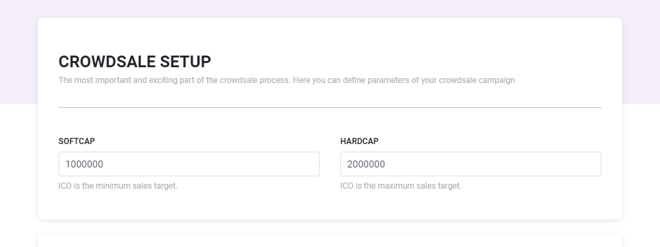 CROWDSALE SETUP NAME: ICO 단계의 명칭입니다. ( Ex. Private-sale, Pre-sale, Crowd-sale 등)