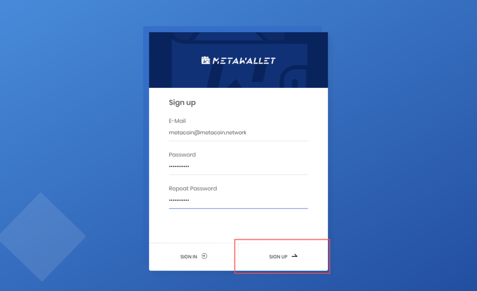 - Sign Up MetaWallet