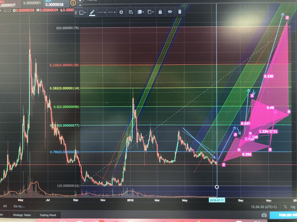 This guy made this call recently from: https://twitter.com/hashtag/dogecoin