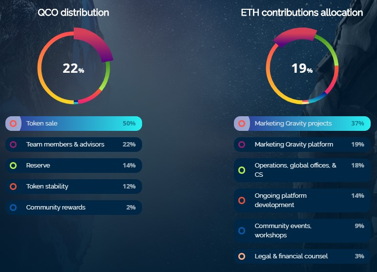 The Qravity ICO is scheduled to begin on July 2, 2018 with a pre-sale. There’s a 30% bonus on QCO tokens during the pre-sale.