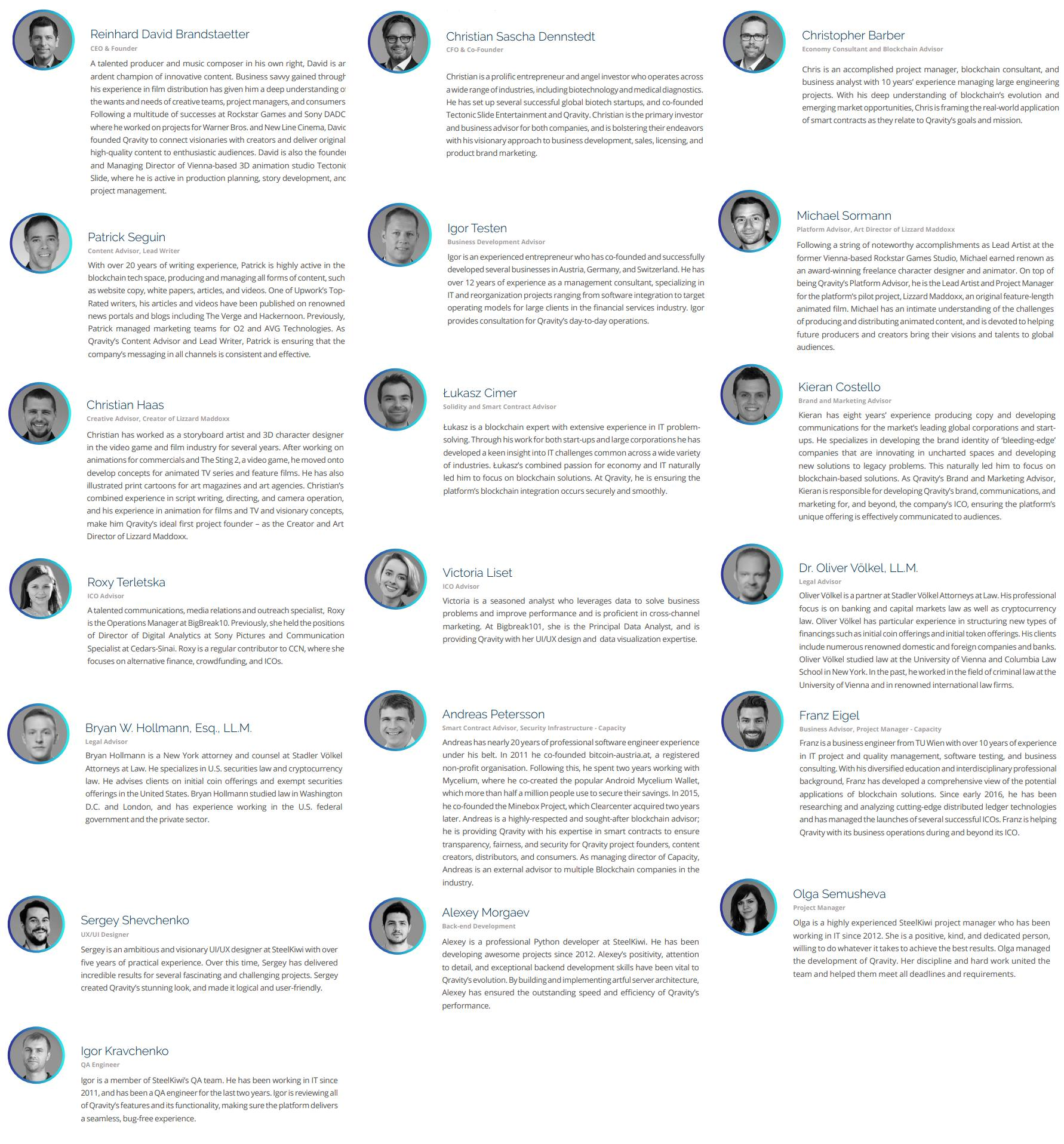 Qravity also has its own currency token, as well as a system of smart contracts based on the Ethereum blockchain that the platform uses to track the process of content creation, distribute royalties among team members, and Qravity-produced content directly to market.