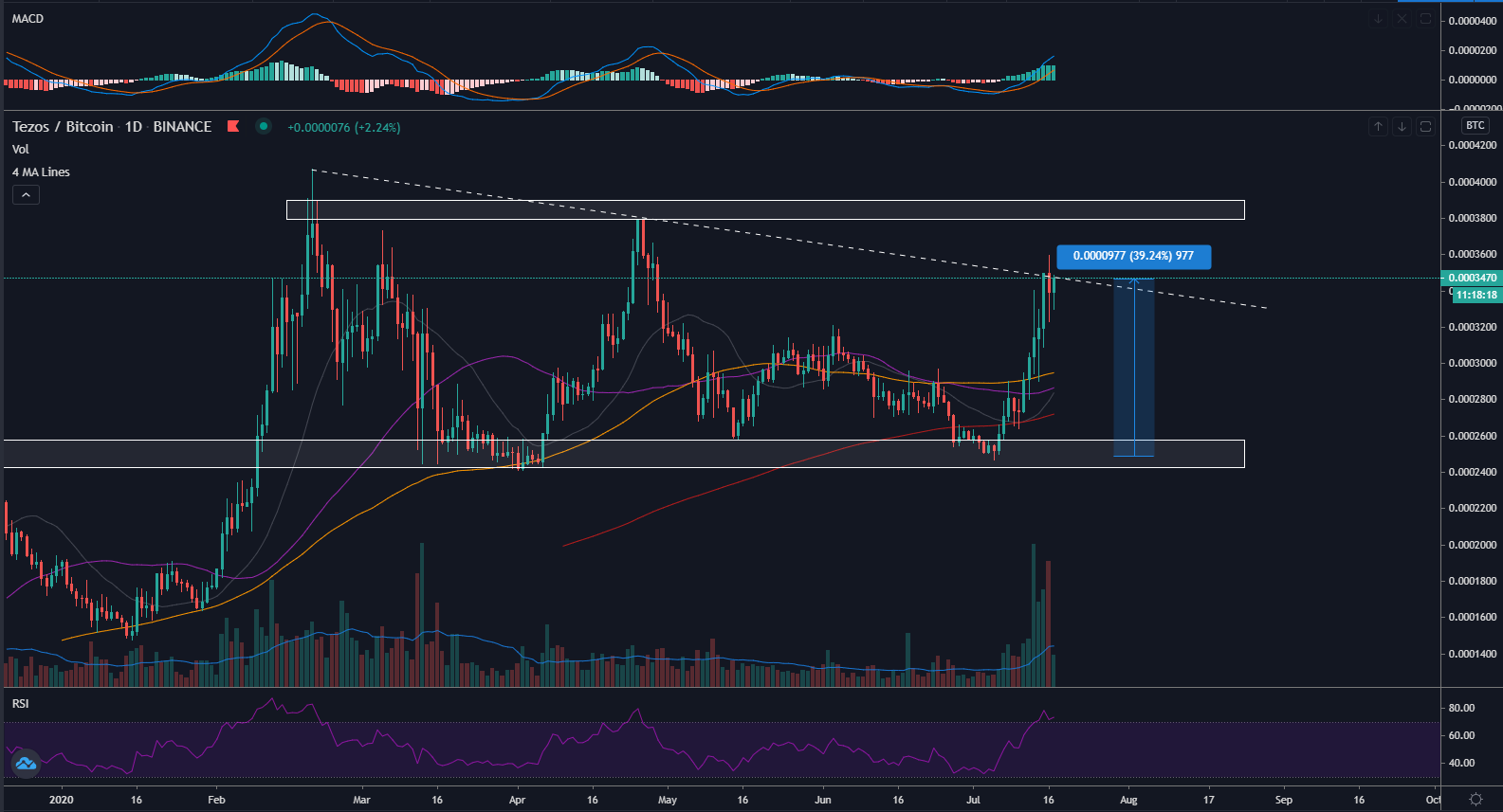 For this segment, I would like to discuss the current movement of Tezos or XTZ against Bitcoin.