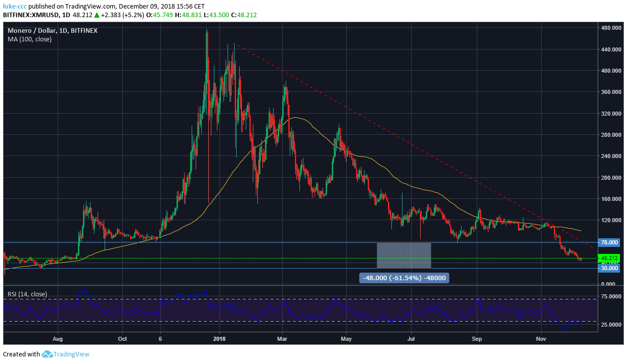 Monero's listings are also noteworthy, the rate of which is currently at the lowest level since mid-August 2017. Considering that the nearest, significant support, in the vicinity of which some higher demand reaction might appear is only at the level of $28, in the near future we could expect a continuation of the current downward trend.