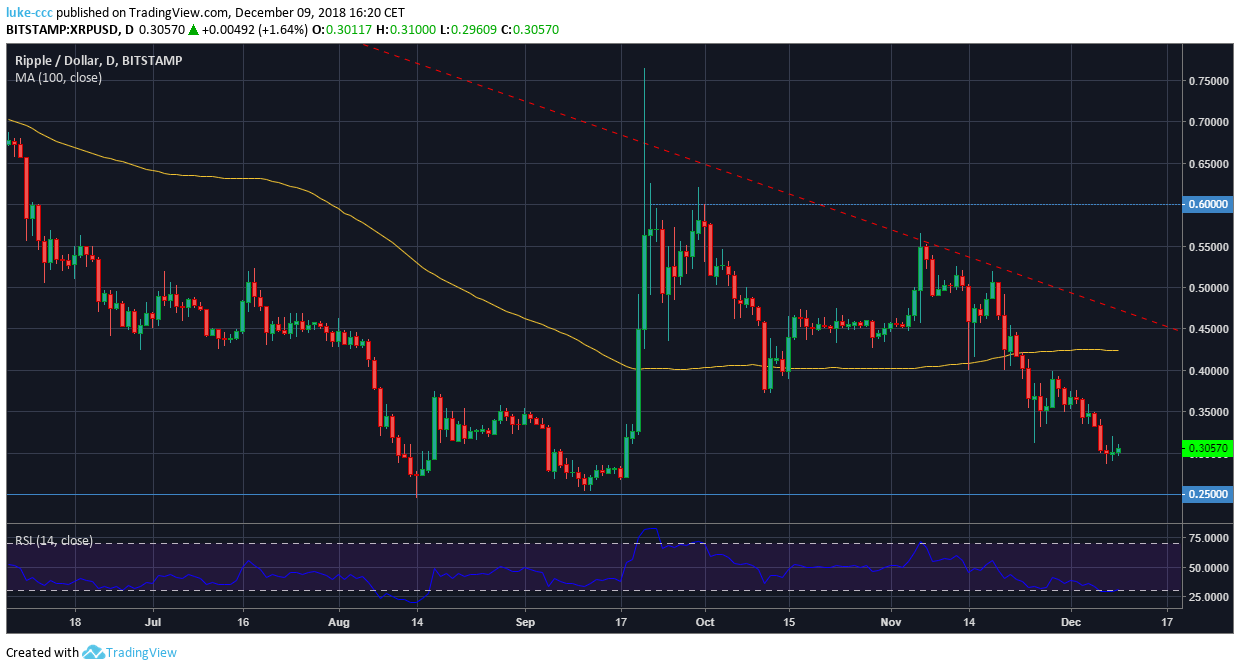 Looking at the Ripple quotes, we notice that despite the fact that in the second half of September this year the market beat the downward trend line, but the increases did not last too long. For some time now we have been observing the decisive advantage of the sellers, which contributes to a significant depreciation of the XRP value. This fact meant that today the Ripple rate was at the lowest level since September 20, 2018.