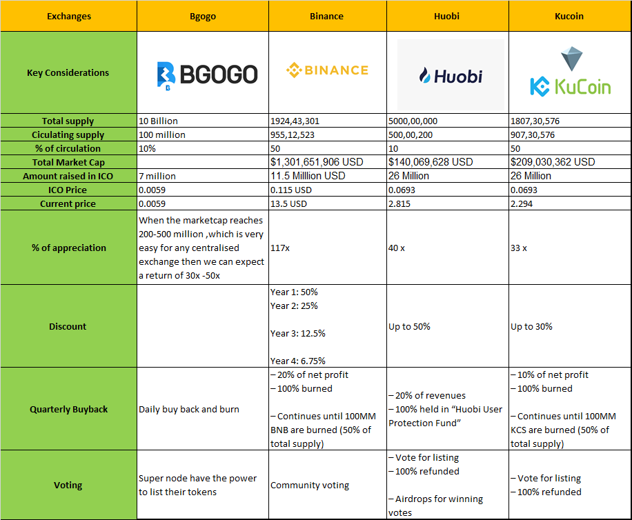 Here is the comparision of other exchanges Vs BGOGO - The Beast :-)