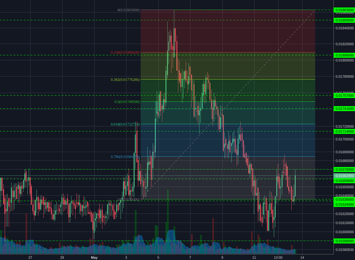 Its best to wait for a sustained break above the 0.01714 resistance before considering any bullish positions.