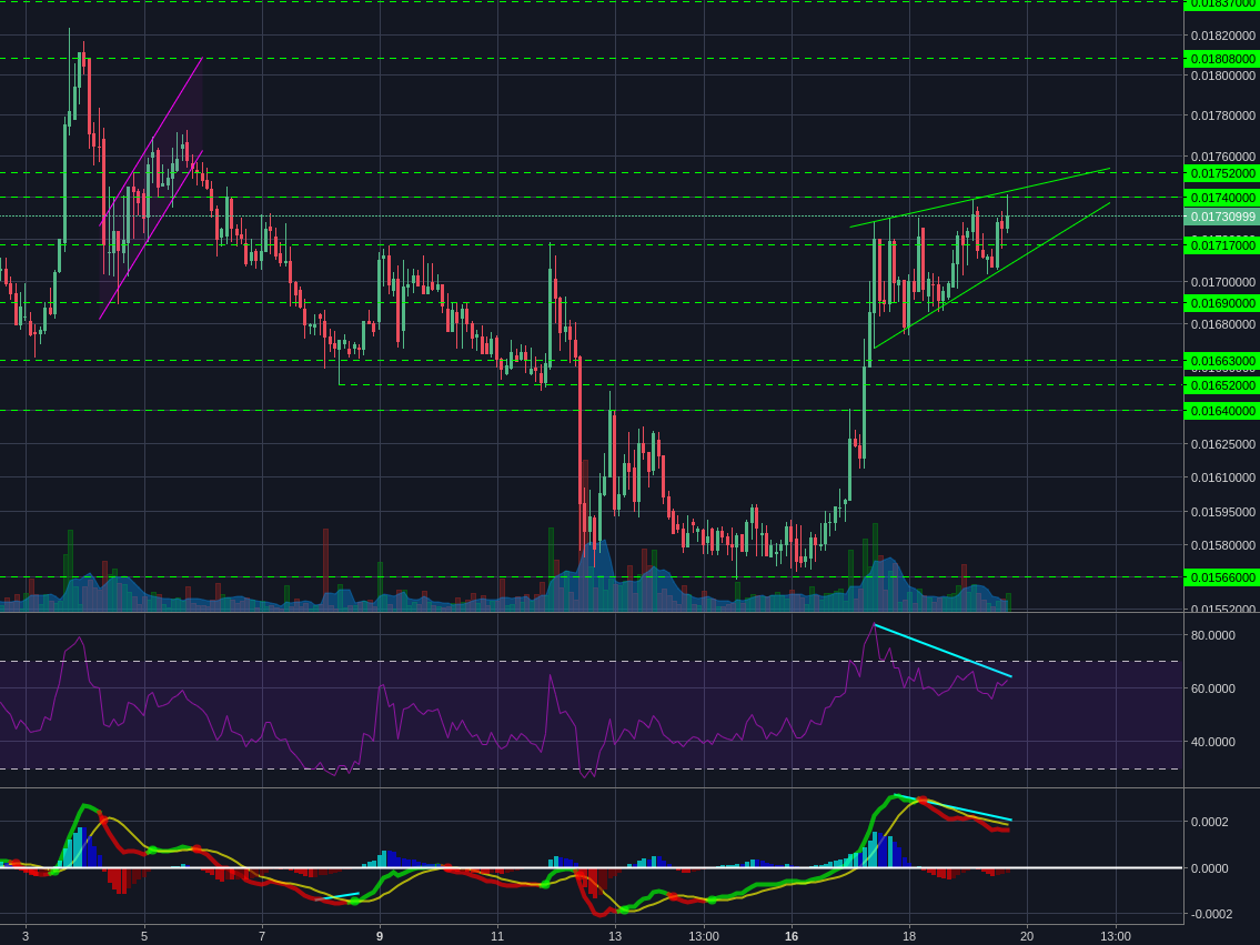 After retesting both the 0.02890 resistance and 0.02760 support, Monero is hopefully settling into a consolidation zone after its huge pump yesterday. Volume has dropped off significantly, making this a good candidate for a bullish consolidation, its just a matter of waiting to see if we hold these levels over the next day or two.